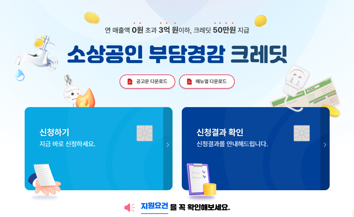소상공인 50만원 지원금, 부담경감크레딧 신청 방법