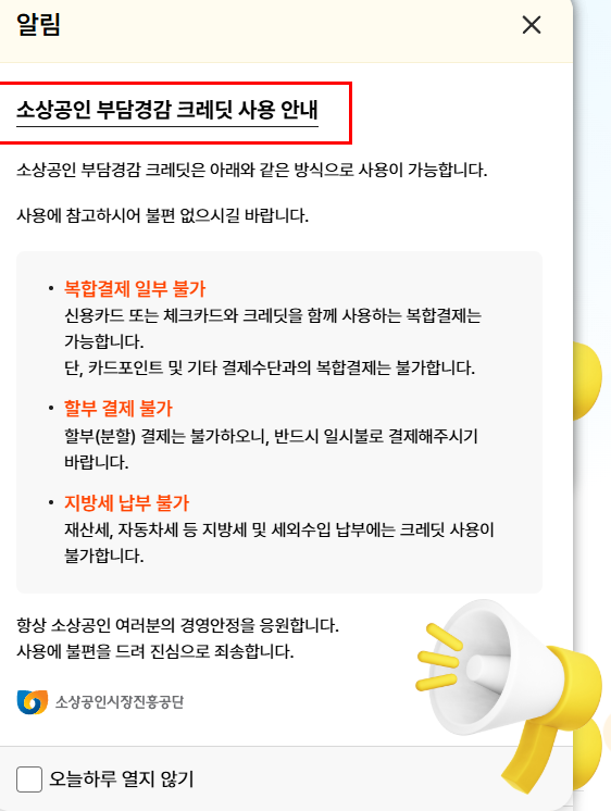 소상공인 50만원 지원금, 부담경감크레딧 사용 방법