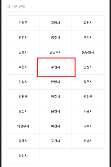 -. 경기지역화폐 어플 "경기지역화폐 가맹점 찾기" → 수원시