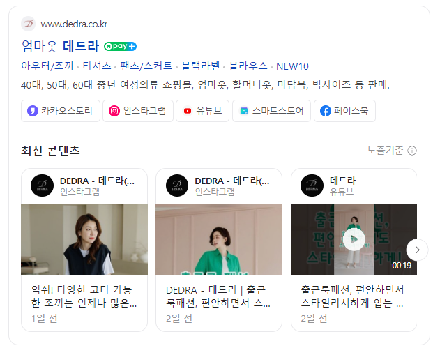 앞에 소개 드렸던 로즈맘과 비교해봤을 때, 데드라는 확실하게 보다 젊은 느낌을 주는 쇼핑몰입니다. 40대부터 50대까지의 연령대를 아우르는 멋스러운 옷들이 주를 이루고 있어, 다양한 연령층의 고객들이 만족할 만한 제품을 찾을 수 있습니다. 특히 데드라에서는 TV 드라마에서 연예인들이 입고 나온 동일한 상품들을 판매하는 경우가 많아, 최신 트렌드를 따라갈 수 있는 아이템들을 만날 수 있습니다.