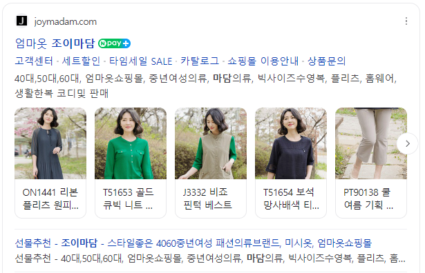 중년여성의류 쇼핑몰 네번째는 조이마담입니다.
