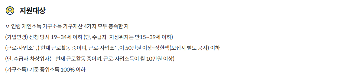 청년내일저축계좌는 아래의 자격을 모두 충족해야 합니다.